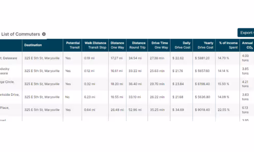 Commuter Analysis doesn't just stop at visuals. With our detailed list view, you can delve deeper into the commuting challenges each employee faces. Determine potential transit riders, daily commute expenses, and even how much they spend annually getting to work.
