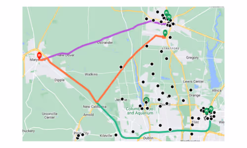 Considering a transportation initiative? Be it a carpool system or a comprehensive transportation plan, Commuter Analysis offers a sneak peek into how these programs could be implemented, including potential routes, stops, and route insights such as distance covered and miles saved.